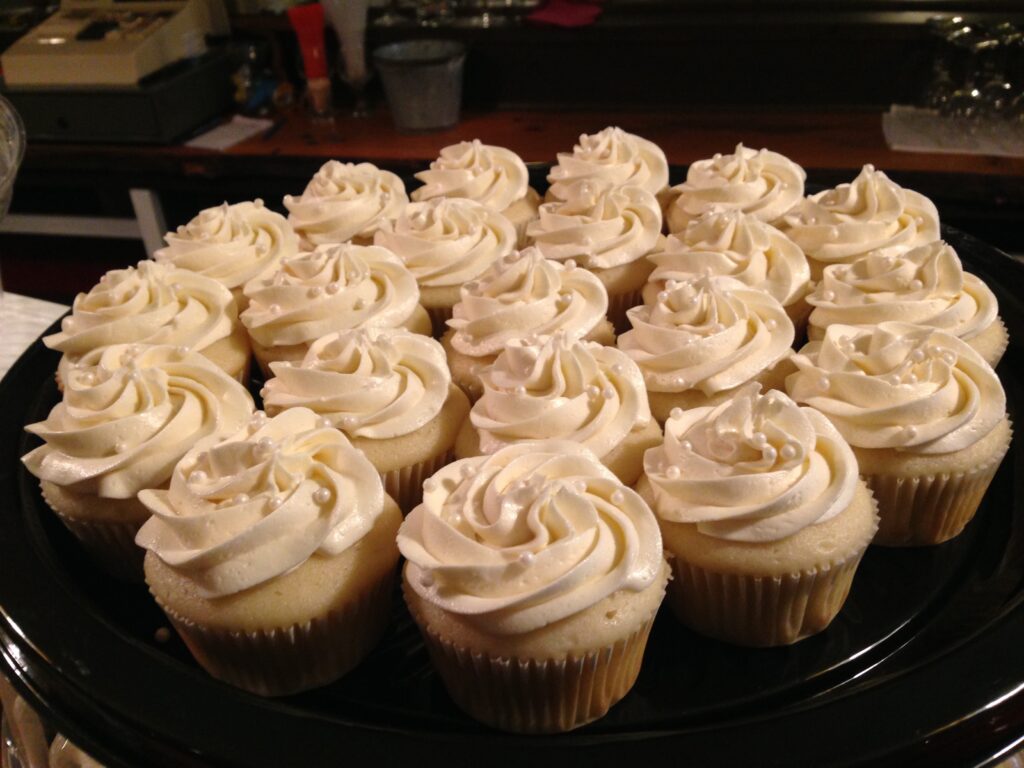 Ajay and Taryn had a traditional Indian wedding in New Jersey on August 1 and an American-style ceremony on August 15, hence the two wedding dates. I also got to make cupcakes for their American wedding, but failed to get photos of both flavors. The ones pictured here were white cake with white chocolate pudding frosting and decorated with edible pearls. The other flavor was red velvet, with white chocolate pudding frosting and decorated with a single red heart sprinkle.