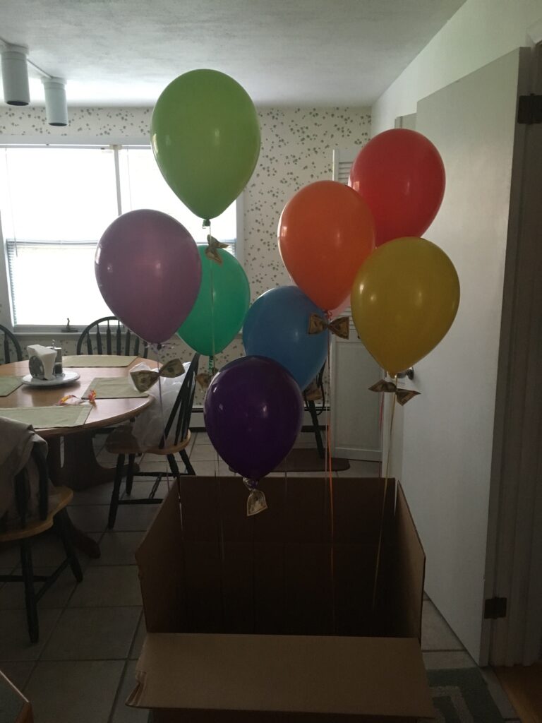 For my sister's birthday, I tied cash to a bunch of helium filled balloons, taped those balloons down onto a box at strategic heights and then trapped all the balloons under a layer of wrapping paper, so when she opened the box, all the balloons would pop out, but not fly away!