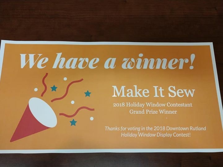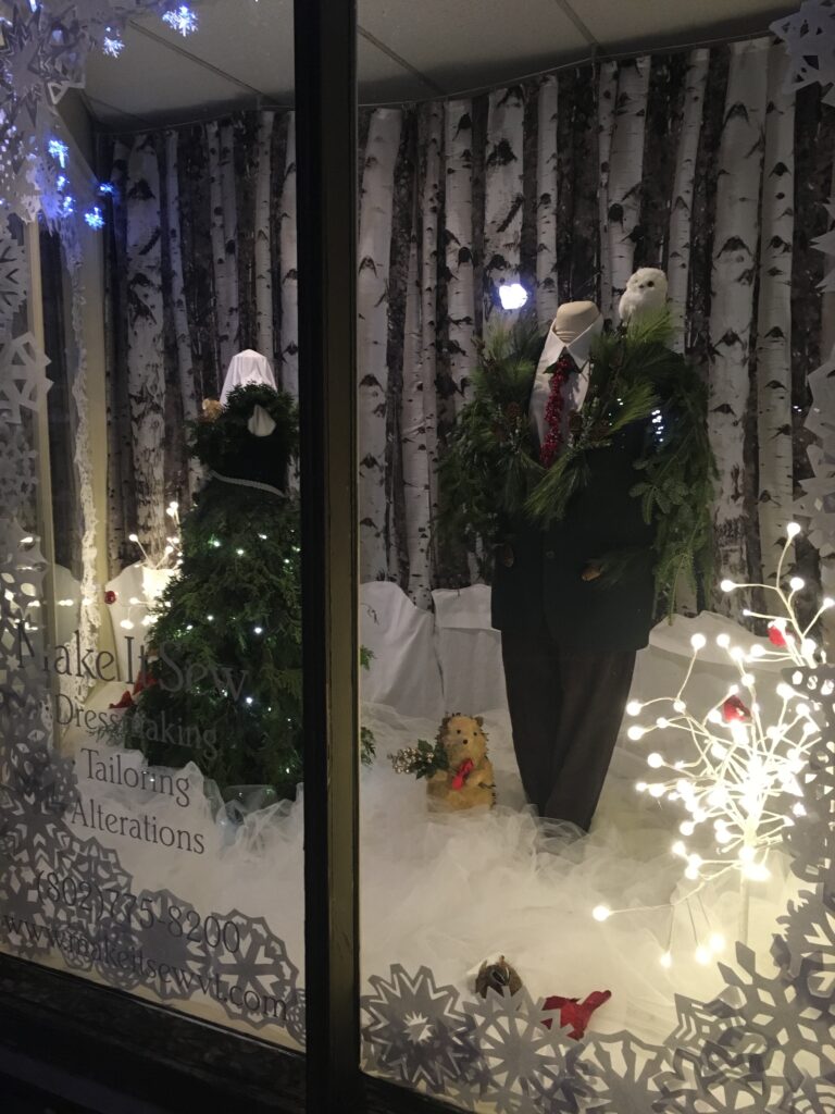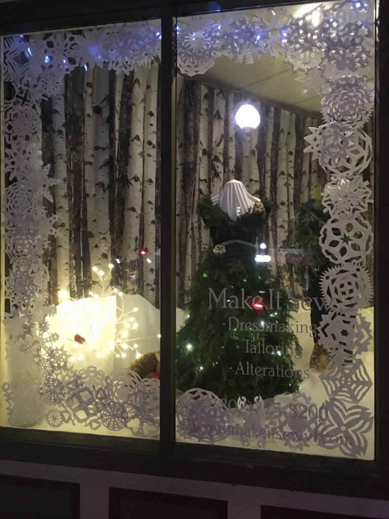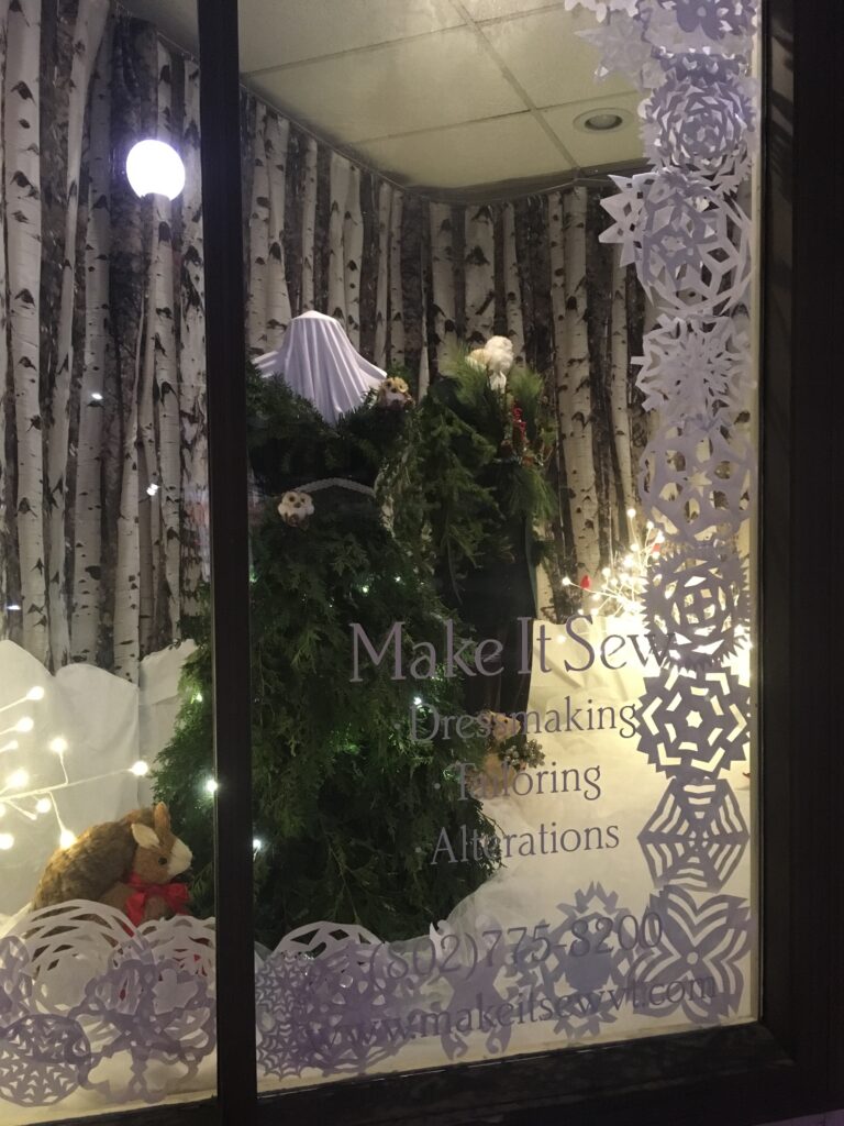 This year the Downtown Rutland Partnership sponsored a holiday window decorating contest for the first time! This was the entry for Make it Sew. It took many hours to plan, prep and assemble and I am so incredibly proud of the finished display!