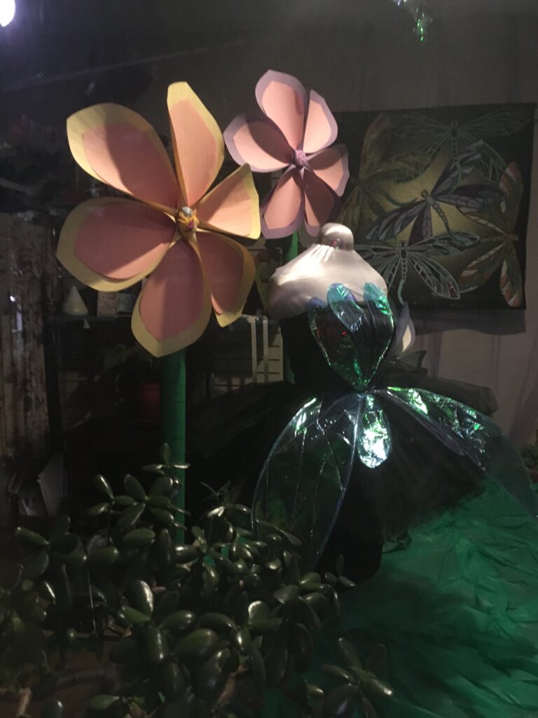 To top it all off, there are little pollen sprites made out of iridescent cellophane and hung from the ceiling.