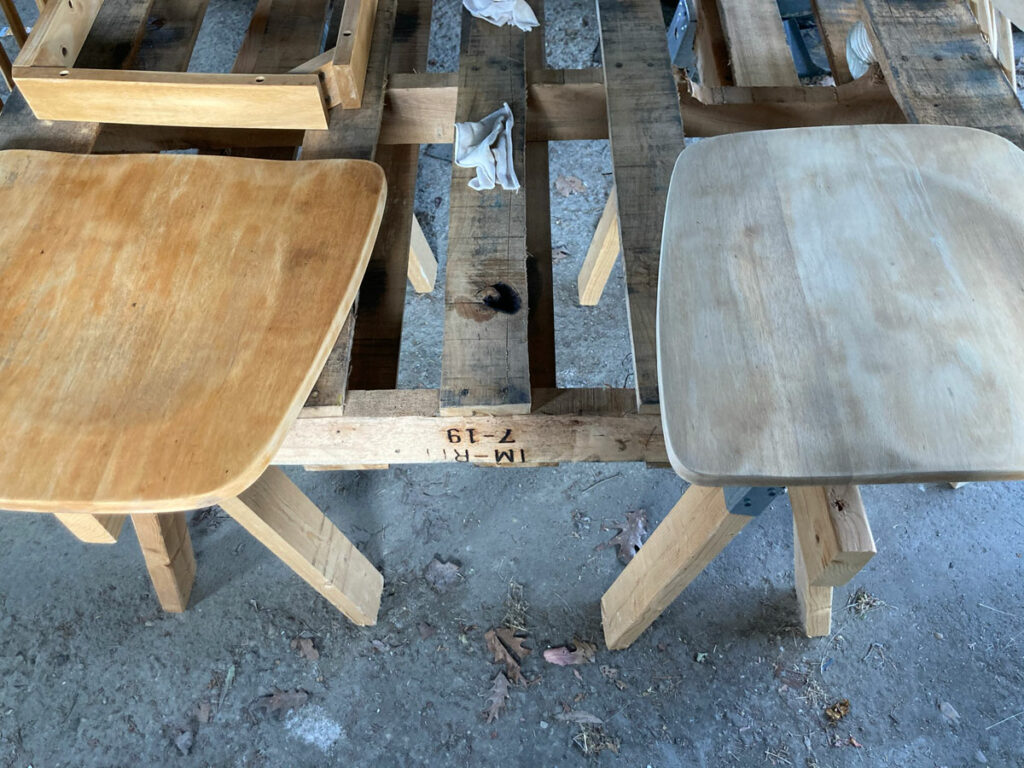 I took them apart, sanded them down, conditioned the wood, stained them a dark walnut, and used a wipe-on poly to finish them off. Quite the improvement!