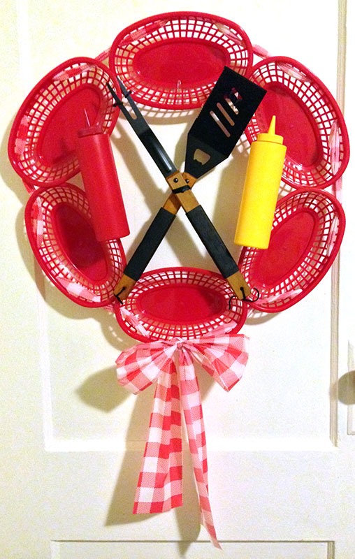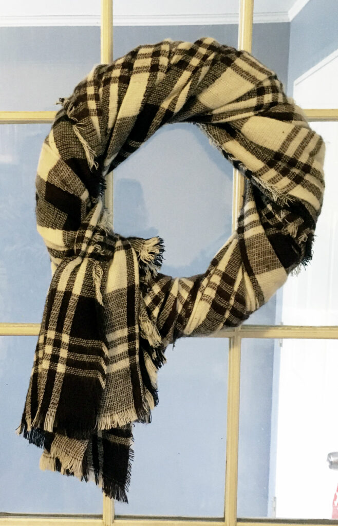 Just a simple little wreath for the winter weeks that don’t have a holiday assigned to them. I bought a scarf at Big Lots for $5, wrapped it around a straw wreath, and pinned it in place. Voila!